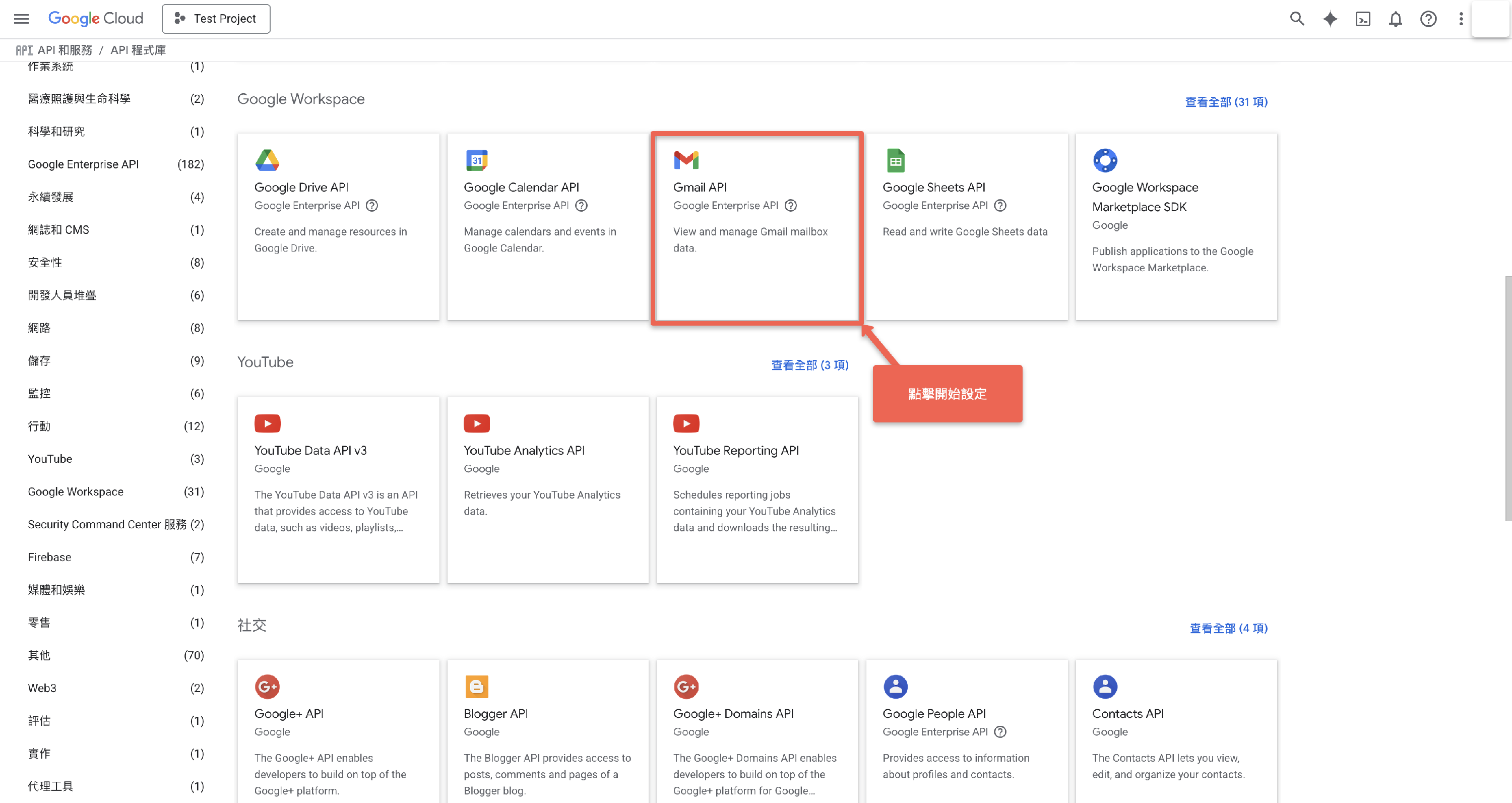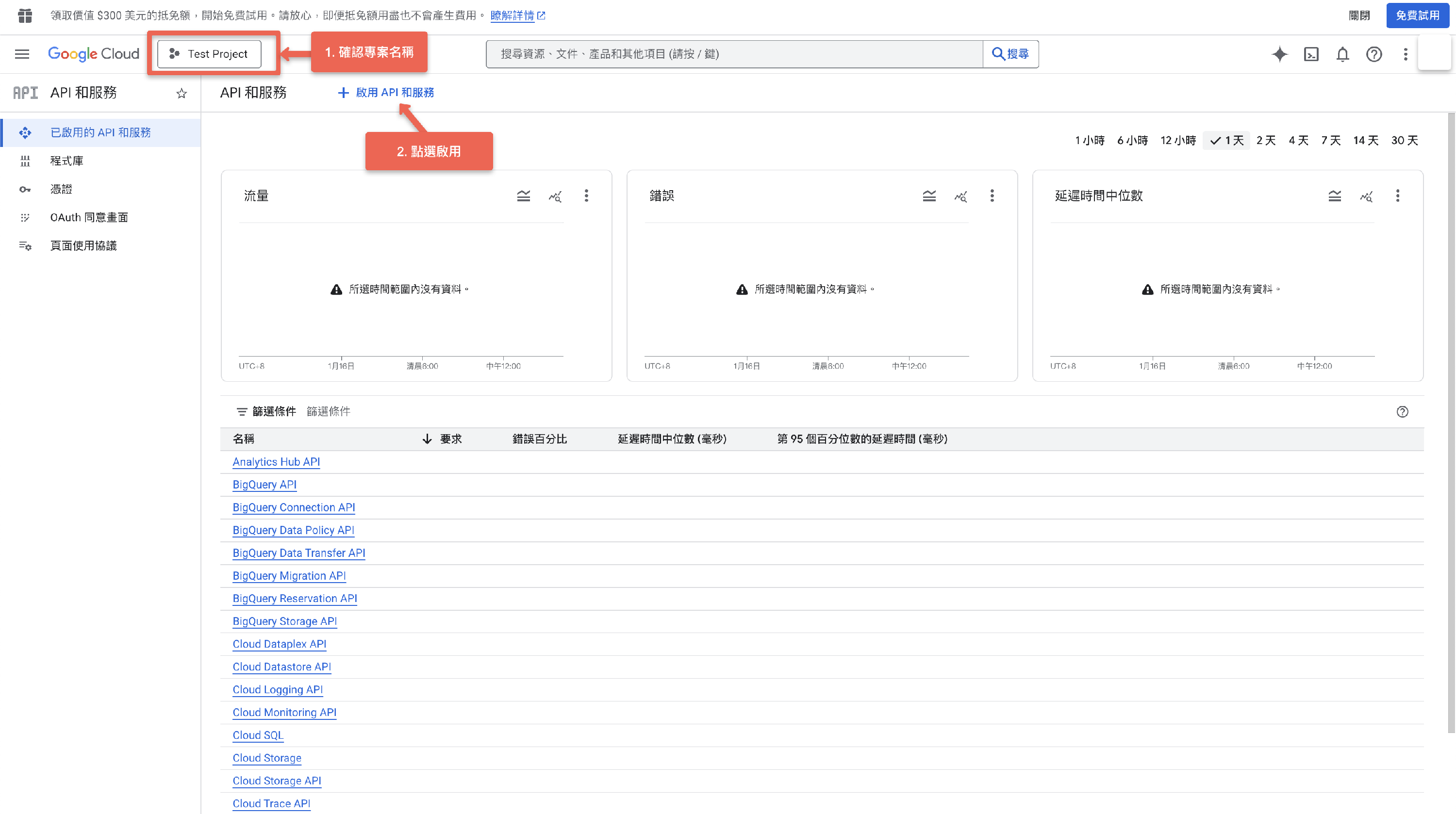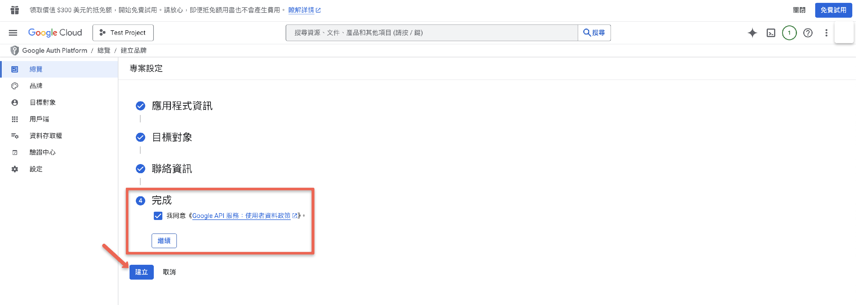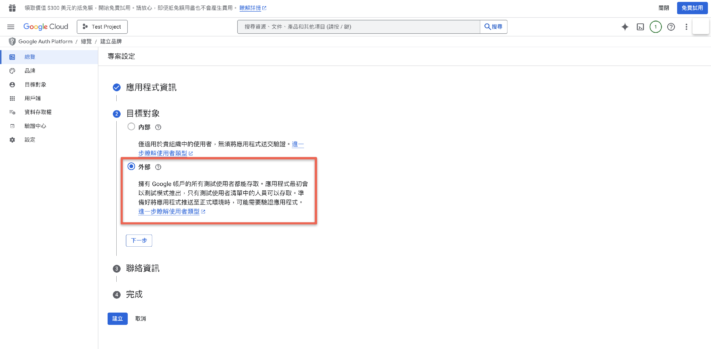 - 點入 Google Cloud 平台,進行以下申請步驟