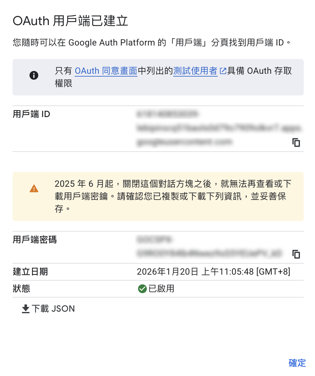 接續設定 OAuth 用戶端,命名用戶端資訊後進行以下設定: